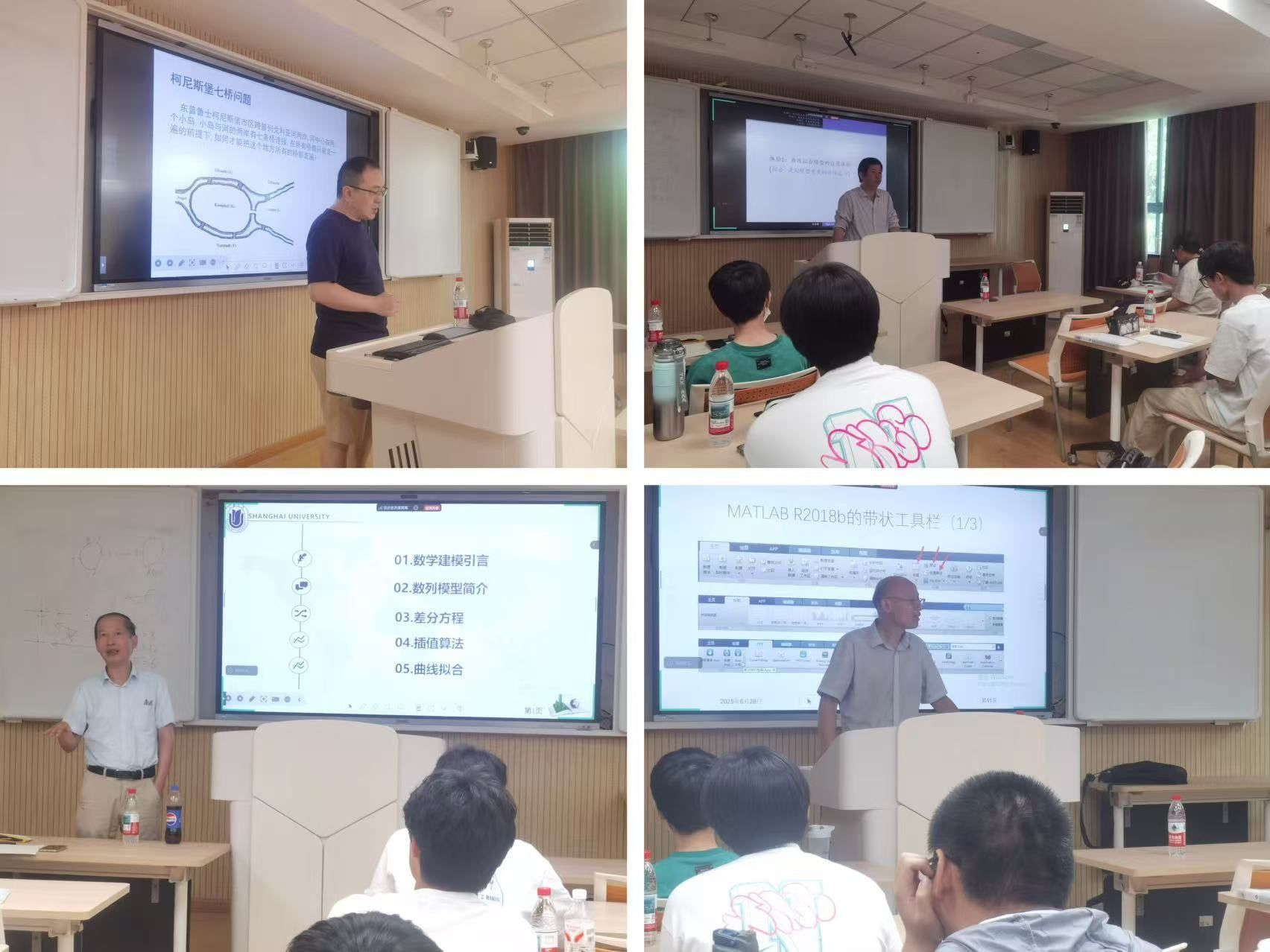 7月5-6日,在格致中学实践点,李新祥老师的《生活中的数学建模》、谭福平老师的《Matlab建模的应用体验》、刘见礼老师的《方程建模的应用体验》、王文环老师的《图论建模的应用体验》等精彩课程深入浅出,逻辑清晰,构建起完整的数学建模知识体系,深受同学们喜爱。