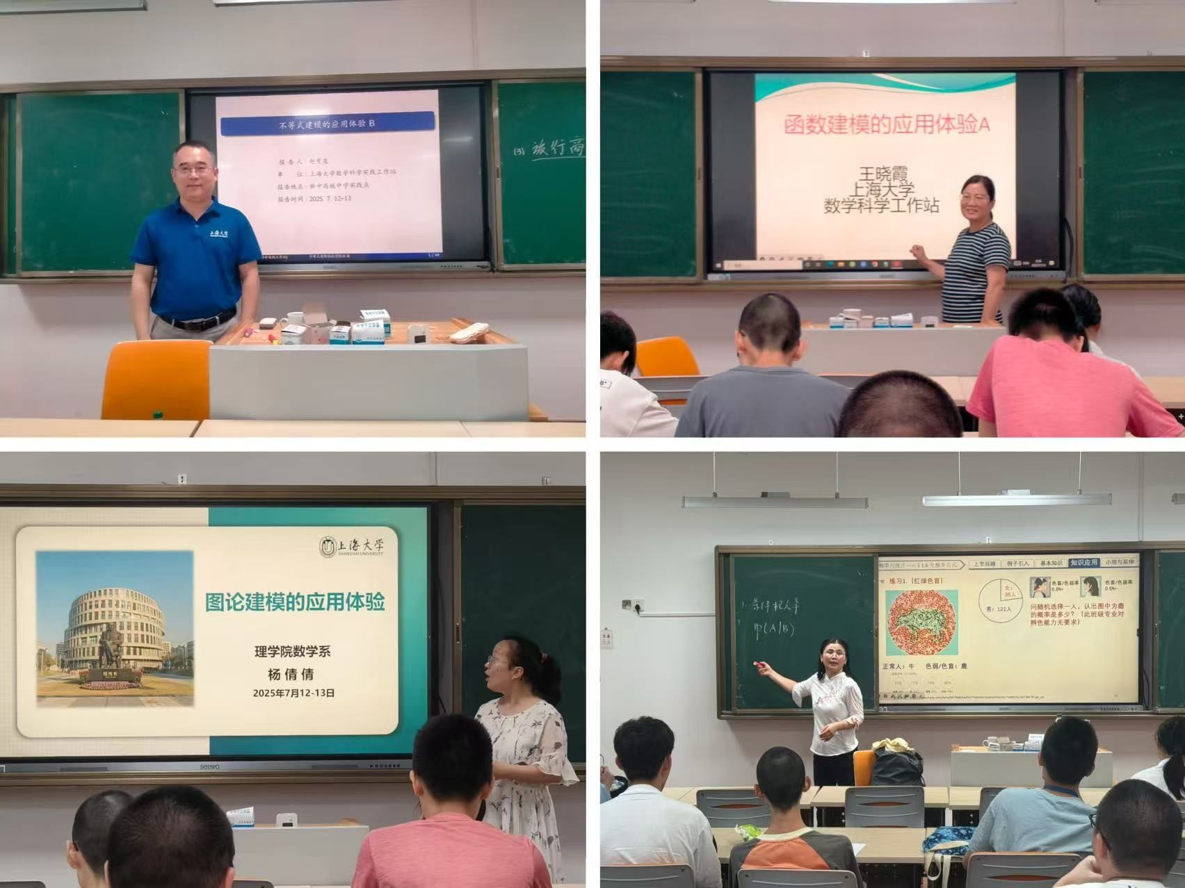 7月12-13日,在新中高级中学实践点,赵发友老师的《不等式建模的应用体验》、王晓霞老师的《函数建模的应用体验》、杨倩倩老师的《图论建模的应用体验》、阳芬芬老师的《概率论的应用体验》等精彩报告使得同学们了解到数学科学发展的最新成果,激发了同学们学习数学的热情和兴趣。