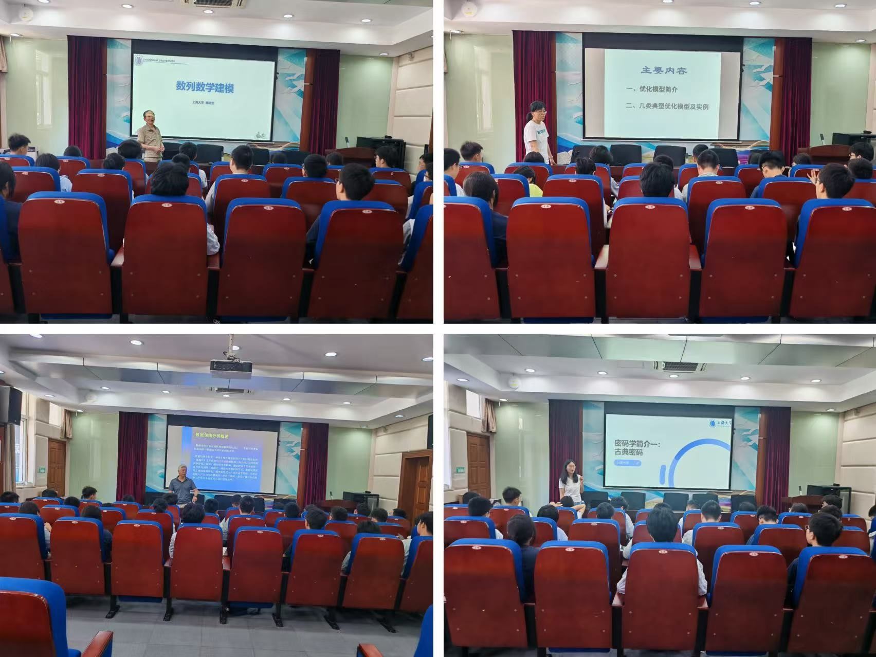 7月5-6日,在宝山区青少年活动中心实践点,杨建生老师的《数列建模的应用体验》、吕巍老师的《优化建模的应用体验》、杨永建老师的《运筹学理论方法及应用》、丁洋老师的《密码学的应用体验》等精彩报告使得同学们增长了数学知识,提升了数学创新素养,从不同维度展现了数学在现实世界中的强大力量。